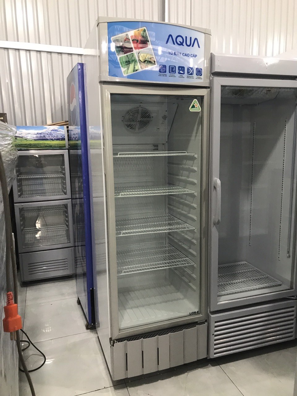 Tủ mát AQUA 340 LÍT AQS-F418S, mới 90%, 4 khay vỉ rộng , mát lạnh nhanh, chạy êm, tiện dụng trưng bày hàng hoá, không bám tuyết, chảy nước.